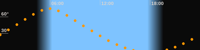 | Höchster Stand (Kulmination) | 05:54 Uhr (h = 74,5°) |