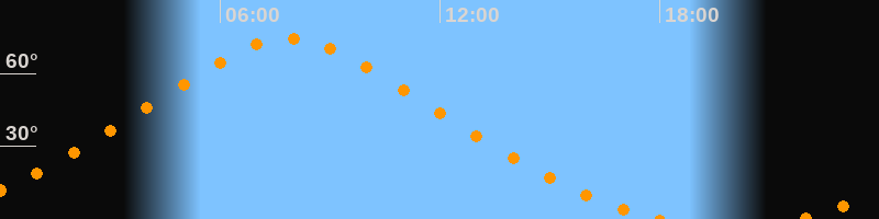 | Höchster Stand (Kulmination) | 07:52 Uhr (h = 74,5°) |