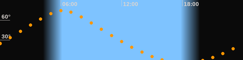 | Höchster Stand (Kulmination) | 06:10 Uhr (h = 74,5°) |
