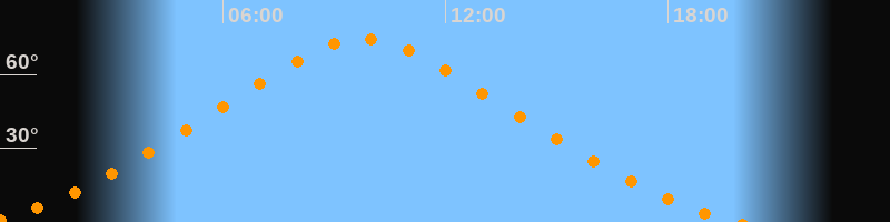 | Höchster Stand (Kulmination) | 09:47 Uhr (h = 74,5°) |