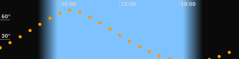 | Höchster Stand (Kulmination) | 07:06 Uhr (h = 74,5°) |