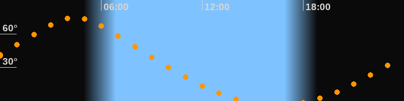 | Aufgang | 18:15 Uhr im Nordosten (αAz = 22,5°) |