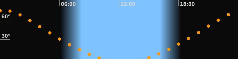 | Untergang | 10:36 Uhr im Norden (αAz = 337,5°) |