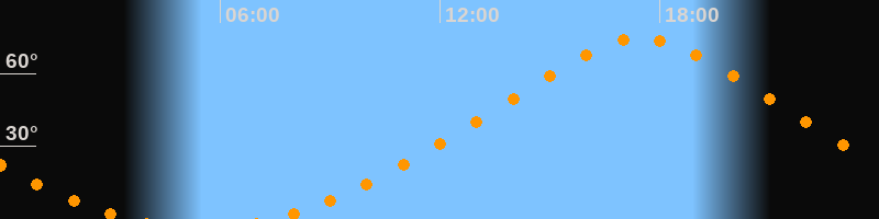 | Höchster Stand (Kulmination) | 17:28 Uhr (h = 74,5°) |