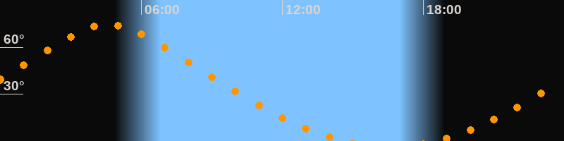 | Höchster Stand (Kulmination) | 04:36 Uhr (h = 74,5°) |