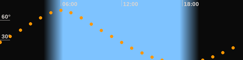 | Höchster Stand (Kulmination) | 05:59 Uhr (h = 74,5°) |