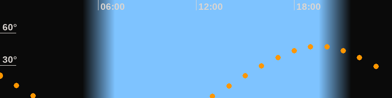 | Aufgang | 12:45 Uhr im Osten (αAz = 76°) |