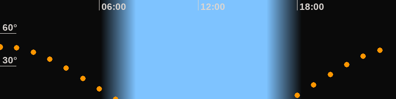 | Untergang | 07:04 Uhr im Westen (αAz = 284°) |