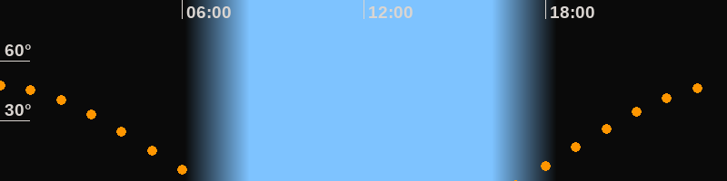 | Aufgang | 17:08 Uhr im Osten (αAz = 76°) |