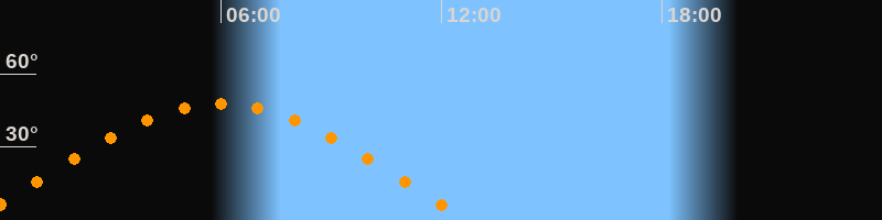 | Höchster Stand (Kulmination) | 06:00 Uhr (h = 47,6°) |