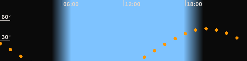 | Aufgang | 13:18 Uhr im Osten (αAz = 76°) |