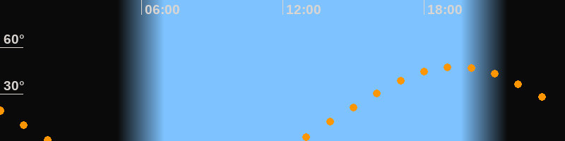 | Untergang | 02:09 Uhr im Westen (αAz = 284°) |