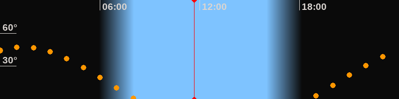 | Untergang | 08:08 Uhr im Westen (αAz = 284°) |
