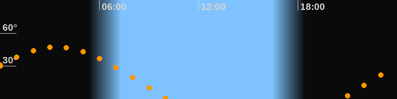 | Höchster Stand (Kulmination) | 03:24 Uhr (h = 47,6°) |