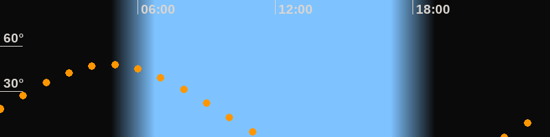 | Untergang | 11:27 Uhr im Westen (αAz = 284°) |