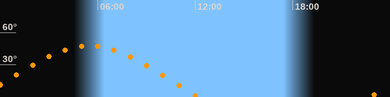 | Höchster Stand (Kulmination) | 05:28 Uhr (h = 47,6°) |