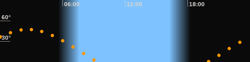 | Untergang | 09:23 Uhr im Westen (αAz = 284°) |