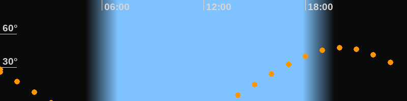 | Aufgang | 13:22 Uhr im Osten (αAz = 76°) |