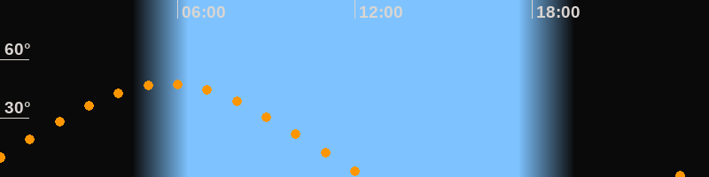 | Höchster Stand (Kulmination) | 05:38 Uhr (h = 47,6°) |