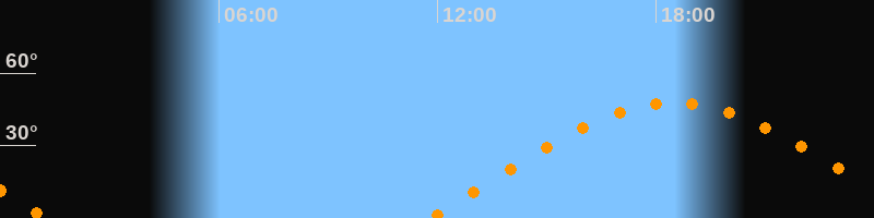 | Aufgang | 11:46 Uhr im Osten (αAz = 76°) |