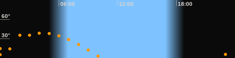 | Höchster Stand (Kulmination) | 04:23 Uhr (h = 38,7°) |