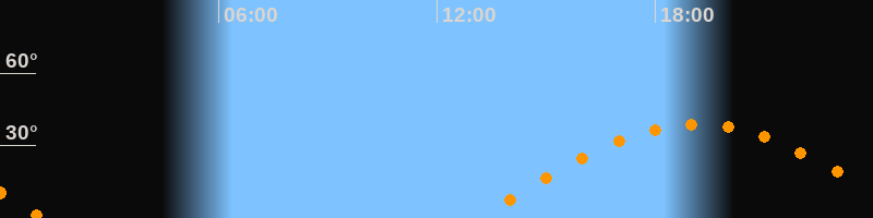 | Aufgang | 13:09 Uhr im Osten (αAz = 90,1°) |