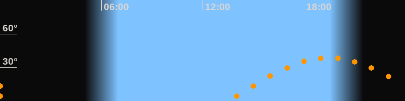 | Höchster Stand (Kulmination) | 19:28 Uhr (h = 38,7°) |