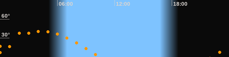 | Untergang | 10:29 Uhr im Westen (αAz = 272,8°) |