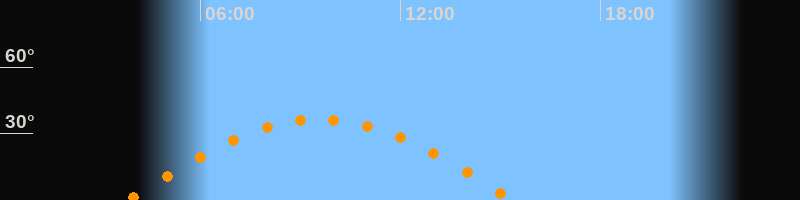 | Höchster Stand (Kulmination) | 09:35 Uhr (h = 36,4°) |