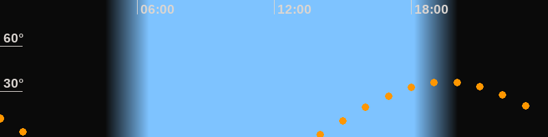 | Aufgang | 13:45 Uhr im Osten (αAz = 93,8°) |