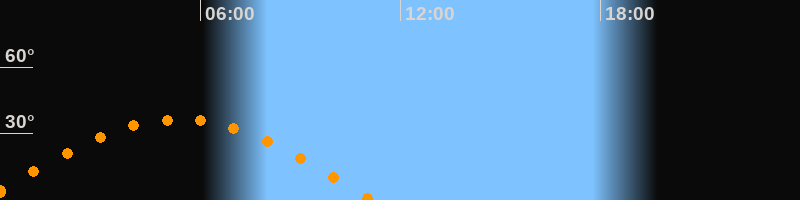 | Untergang | 11:10 Uhr im Westen (αAz = 266,2°) |