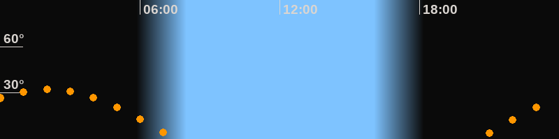 | Höchster Stand (Kulmination) | 02:03 Uhr (h = 32,4°) |