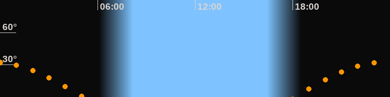 | Untergang | 05:08 Uhr im Westen (αAz = 259,7°) |