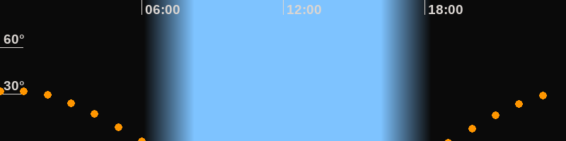 | Höchster Stand (Kulmination) | 00:31 Uhr (h = 32,4°) |