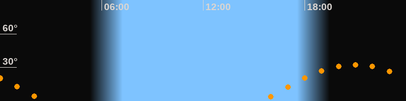 | Aufgang | 15:30 Uhr im Osten (αAz = 100,3°) |
