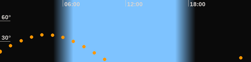 | Aufgang | 22:16 Uhr im Osten (αAz = 88,6°) |
