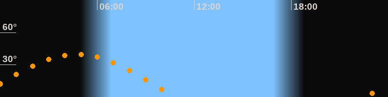 | Aufgang | 22:34 Uhr im Osten (αAz = 88,6°) |