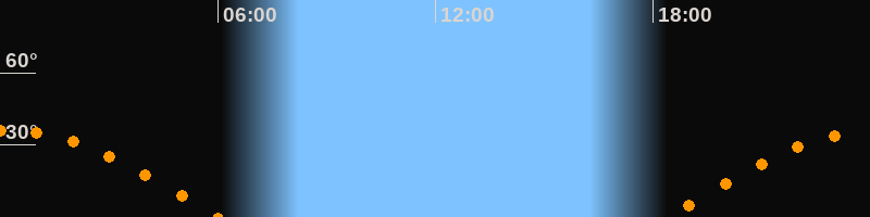 | Aufgang | 18:24 Uhr im Osten (αAz = 94,7°) |