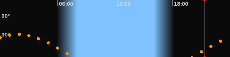 | Aufgang | 20:01 Uhr im Osten (αAz = 94,7°) |