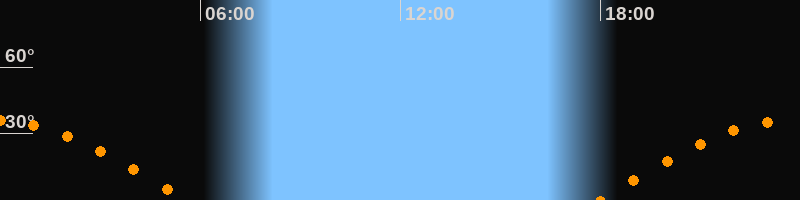 | Aufgang | 17:58 Uhr im Osten (αAz = 94,7°) |