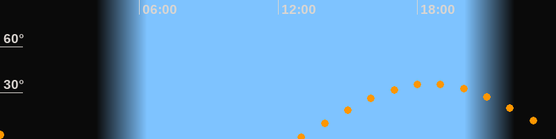 | Höchster Stand (Kulmination) | 18:35 Uhr (h = 35,9°) |