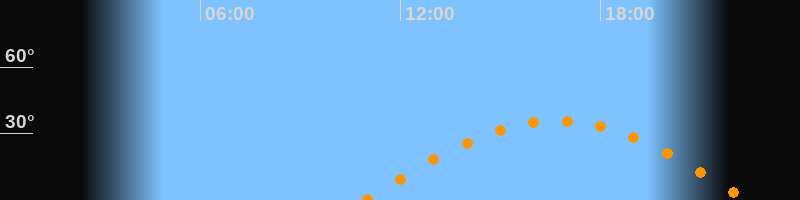 | Höchster Stand (Kulmination) | 16:40 Uhr (h = 35,9°) |