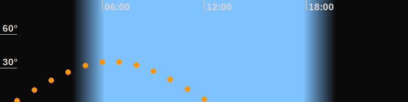 | Höchster Stand (Kulmination) | 06:33 Uhr (h = 35,9°) |