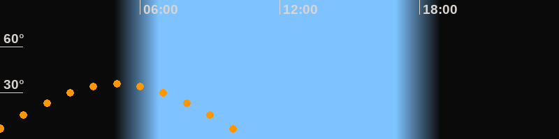 | Untergang | 10:46 Uhr im Westen (αAz = 265,3°) |