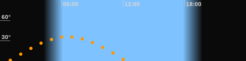 | Höchster Stand (Kulmination) | 06:35 Uhr (h = 35,9°) |