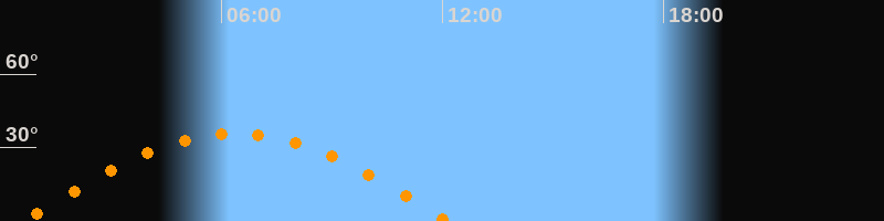 | Höchster Stand (Kulmination) | 06:23 Uhr (h = 35,9°) |