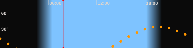| Aufgang | 13:36 Uhr im Osten (αAz = 87,7°) |