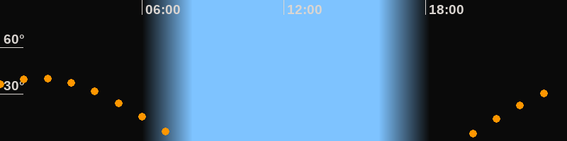 | Aufgang | 19:24 Uhr im Osten (αAz = 87,7°) |