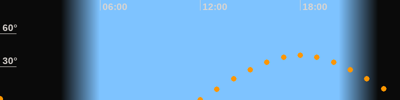| Höchster Stand (Kulmination) | 18:00 Uhr (h = 40,3°) |