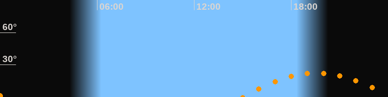 | Untergang | 00:10 Uhr im Südwesten (αAz = 243,5°) |